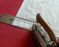 ![]() | Den Saum aufklappen und nächste Saumbreite einbügeln |